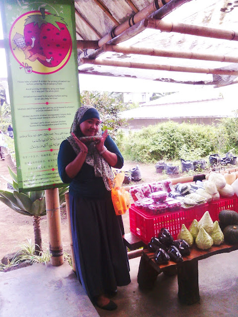 Ambil2 stroberi yang banyak ... ambilnya harus pake gunting, kalo ditarik akan tercabut semua sampai akar2nya